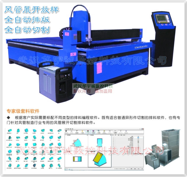 目前,武漢華宇誠數(shù)控生產的排風、排煙風管等離子下料機、地下室、廚房通風管道等離子切割機設備已在北京中央空調及通風系統(tǒng)制造企業(yè)大規(guī)模使用。在河北省的衡水、石家莊、保定、廊坊以及四川成都、重慶、天津、江蘇常熟、泰州、靖江、蘇州、南京、常州、浙江杭州、上海、山東濟南、青島、德州、陜西西安、寶雞、甘肅蘭州、吉林沈陽、長春、哈爾濱、北京通州、海南海口、三亞、內蒙古等地,都有使用武漢華宇誠所生產的全自動臺式數(shù)控等離子切割機企業(yè)。歡迎廣大風管加工制作企業(yè)前來參觀、考察,選購風管專用等離子切割機。除了提供全新生產的全自動數(shù)控等離子切割機,還為客戶改造原有的數(shù)控切割設備,包括:更換數(shù)控系統(tǒng),更換割炬,加長縱向導軌,更換操作軟件,精度調整,增配電容自動調高,弧壓自動調高等技術改造!