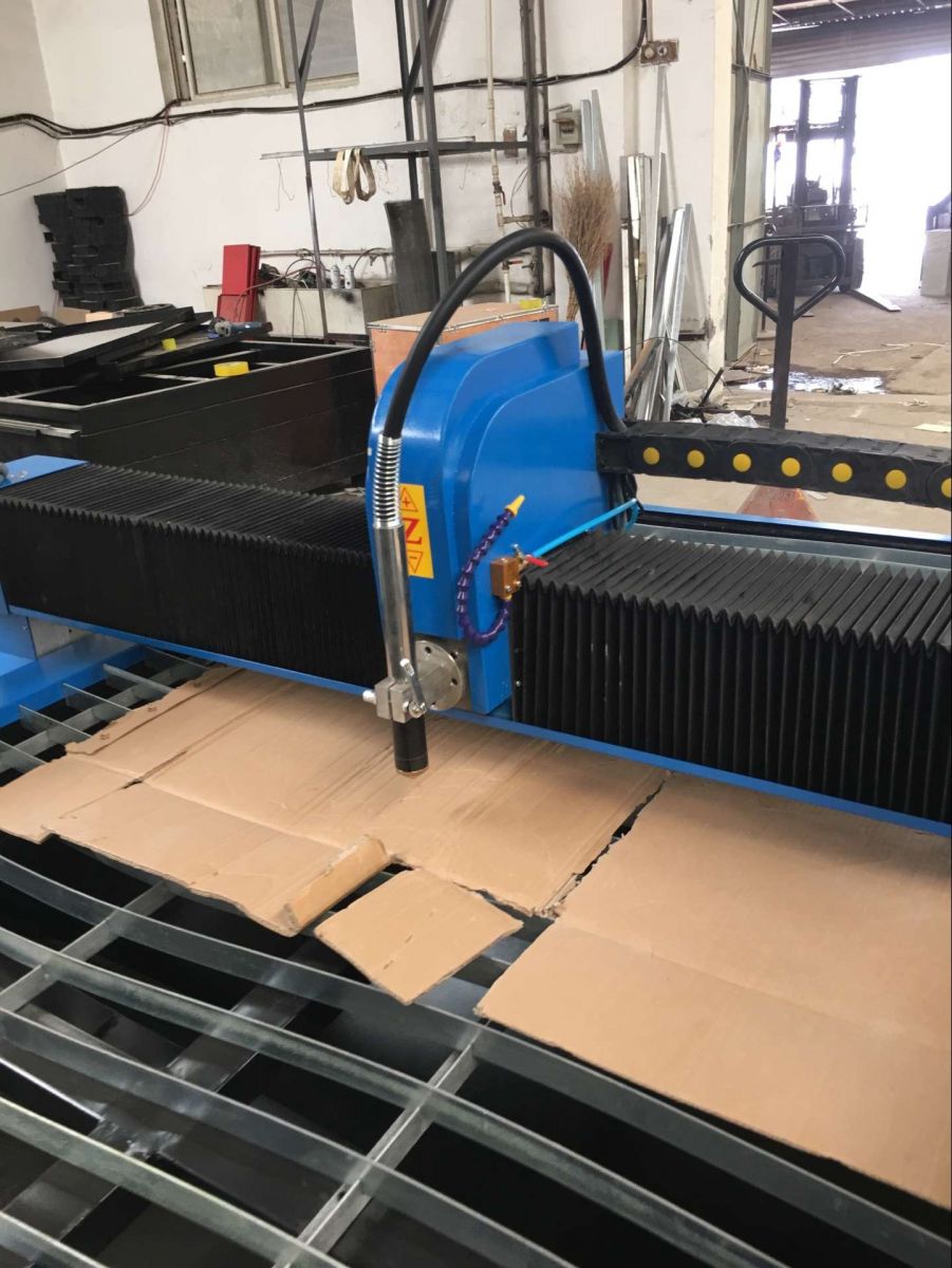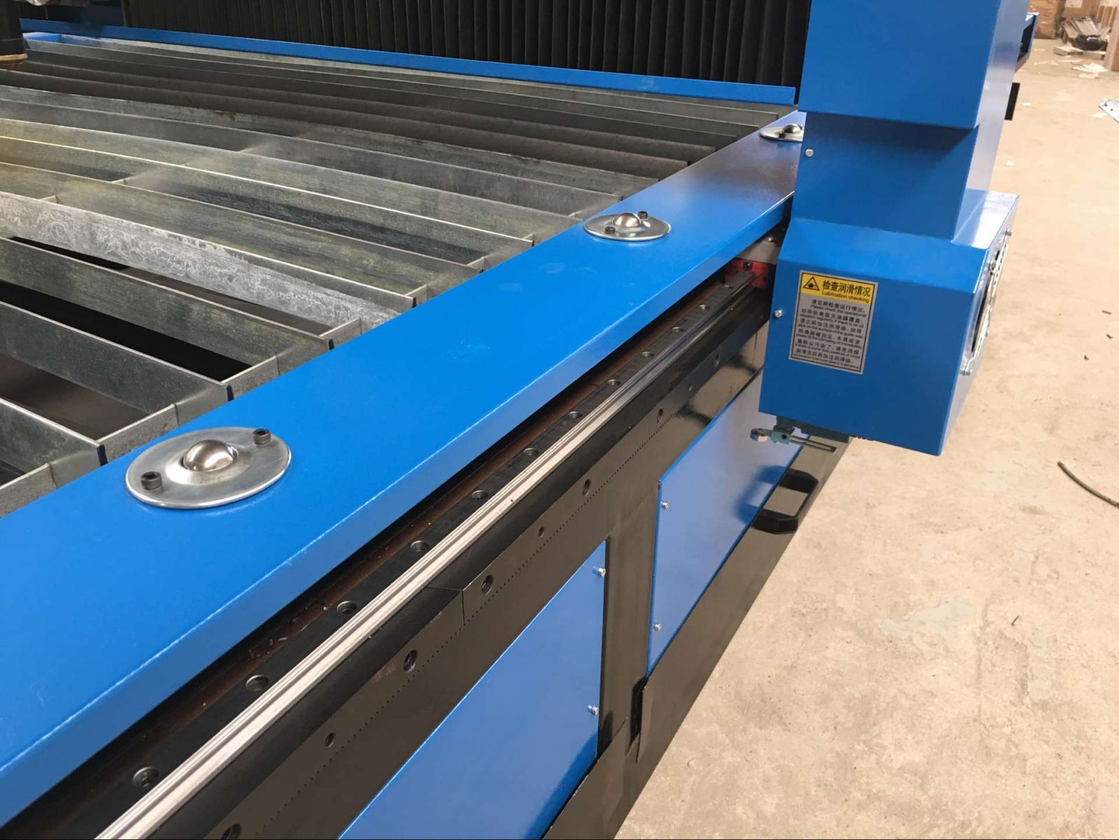 機(jī)器橫梁采用臺(tái)灣進(jìn)口雙軸心導(dǎo)軌,并配有防塵罩保護(hù)。等離子調(diào)高體為鋁合金結(jié)構(gòu),減少橫梁負(fù)載,調(diào)高軸為高碳鋼棒,硬度高耐磨。等離子配套接口裝有等離子防撞裝置,對(duì)等離子割槍提供安全保護(hù)。同時(shí)配有等離子切割噴水裝置,在切割時(shí)能實(shí)時(shí)對(duì)切割點(diǎn)噴水,起到提高切割效果,減小熱變形的作用。